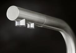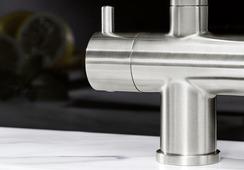- Comfortabele 3-in-1 mengkraan met bedieningshendel voor koud en warm water rechts en voor gefilterd water aan de linkerkant