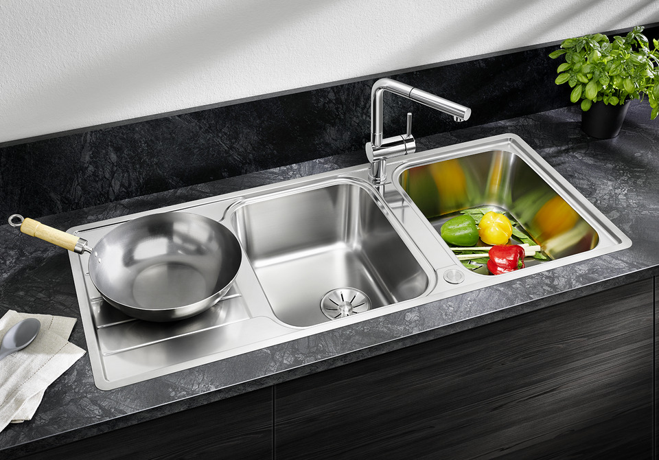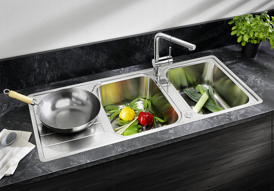 - Hoogwaardige afwerking met verdekte C-overflow overloop en BLANCO InFino afloopsysteem – met de vlakke PushControl afloopbediening